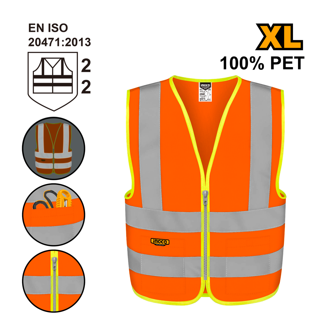COLETE REFLETIVO LARANJA C/BOLSO XL INGCO RV82XL