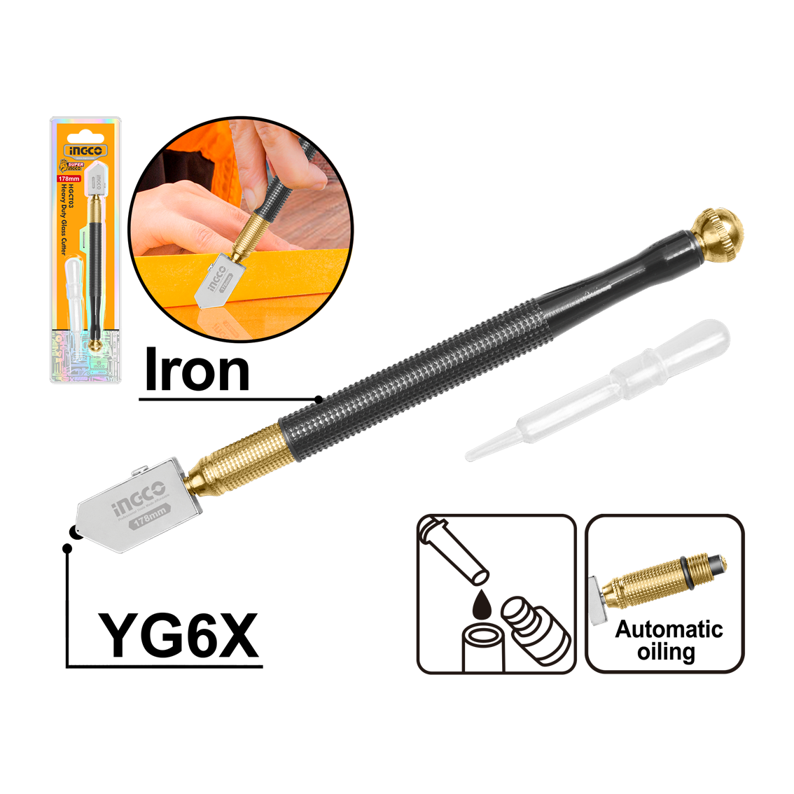 CORTADOR DE VIDRO C/RESERVATORIO PROFISSIONAL 178MM INGCO HGCT03