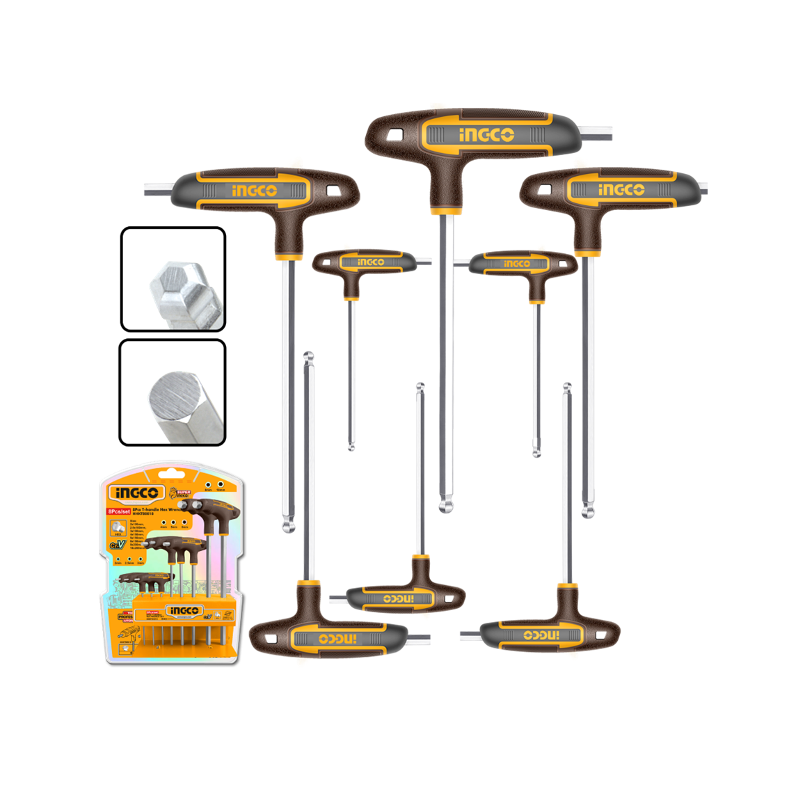 / JOGO DE CHAVE TIPO TEE PONTA BOLA HEXAGONAL C/8PC INGCO HHKT80828