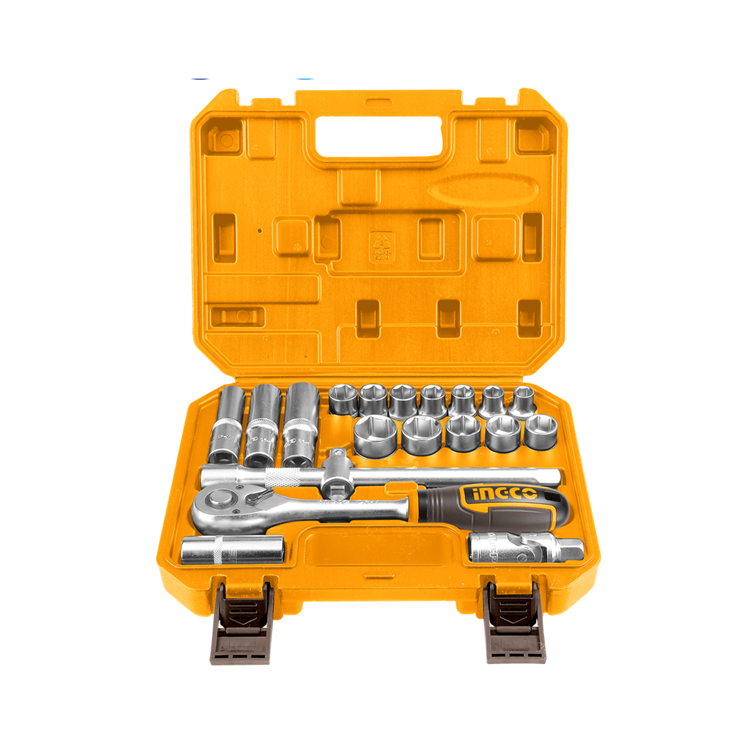 Jogo De Soquetes Com Encaixe De 1/2″ C/20 Pc Maleta De Plástico Ingco