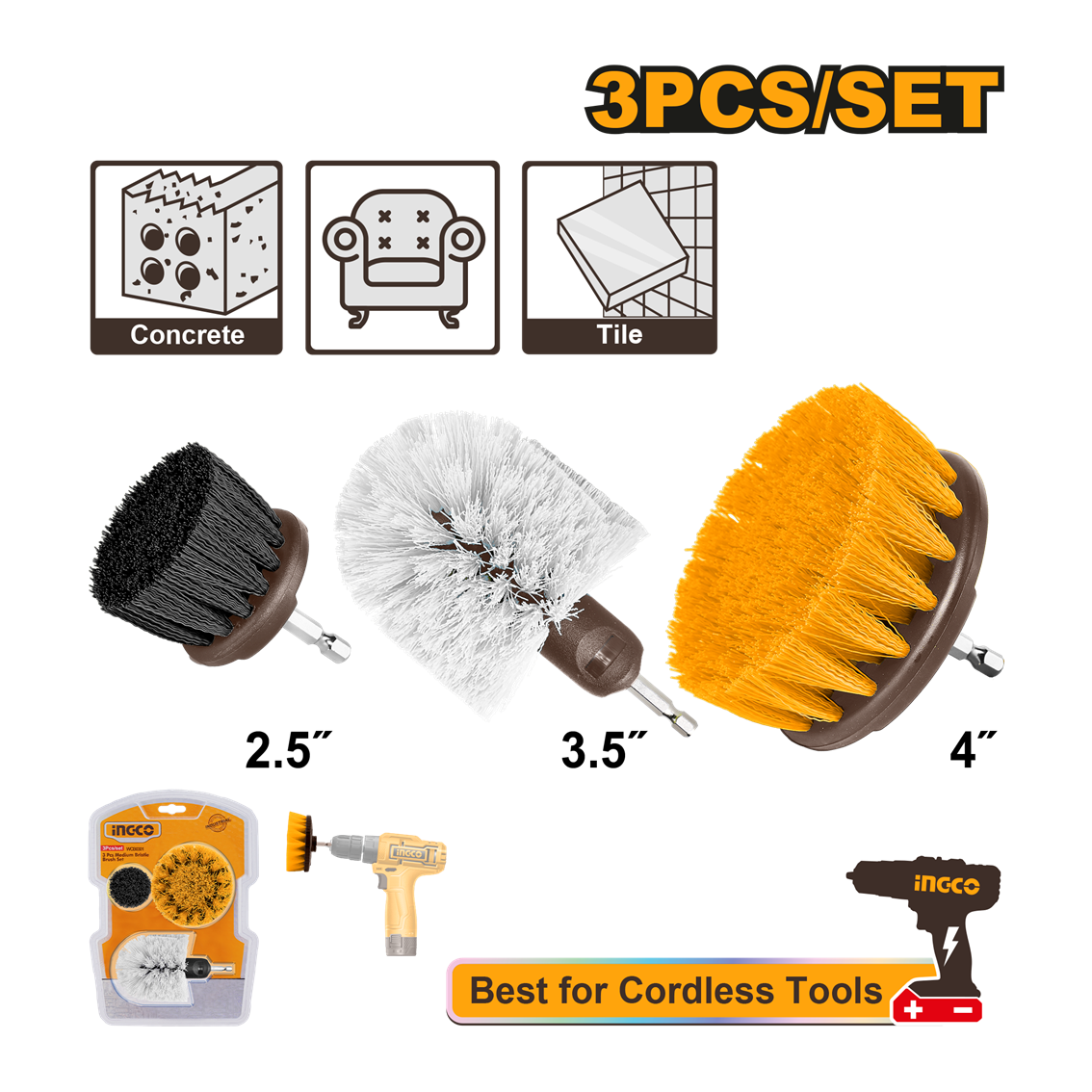 JOGO ESCOVAS DE LIMPEZA HASTE 1/4″ C/3PC INGCO WCB0301