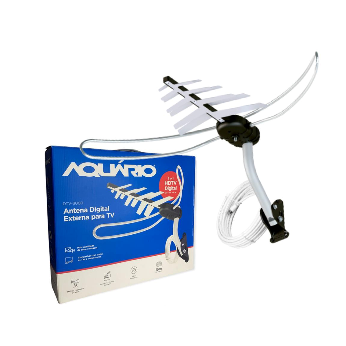 / Kit Antena Digital Aquário Dtv-3000 Com 15m De Cabo