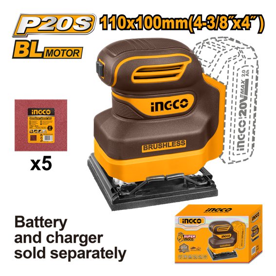 LIXADEIRA ORBITAL 110X100MM À BATERIA ÍON-LÍTIO 20V CSHSLI2024 INGCO (NÃO ACOMPANHA BATERIA) CSHSLI2024